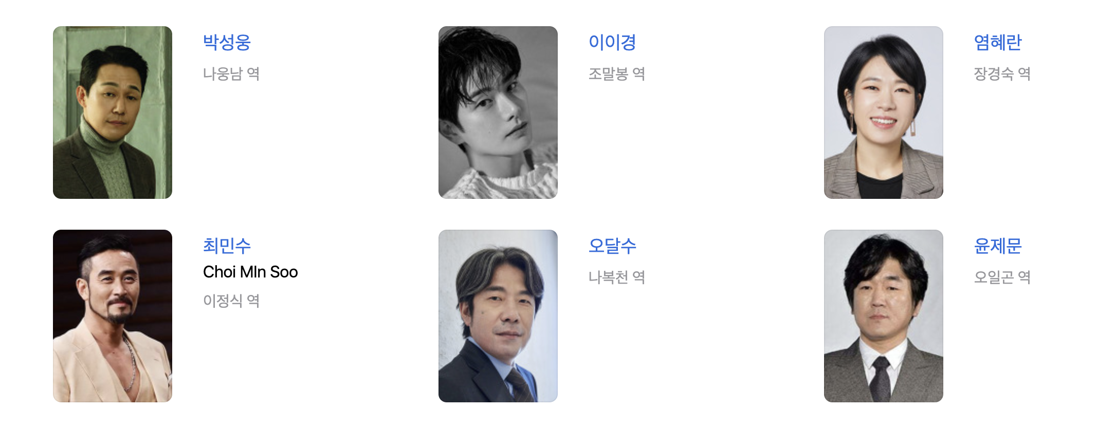 출연: 박성웅, 이이경, 염혜란, 최민수, 오달수, 윤제문, 백지혜